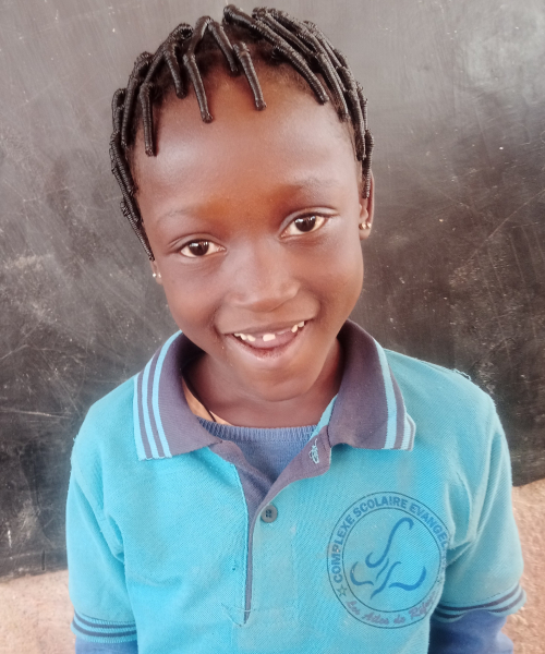 Hello, my name is Florence. I was born on October 24, 2015. I live with my parents in a small home. I have three siblings. Two of them are in school, but the littlest is too young. We don’t have any running water or electricity in our home. My mother walks me to school each day. It is about a kilometer from our home. I am in kindergarten this year (2020-21) so I am learning a lot, but I also get to play. I am learning my colors and all of my letters. My favorite game is hopscotch.