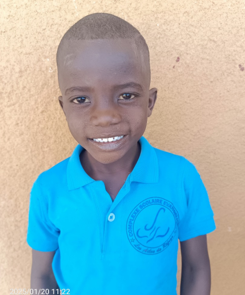 Gideon Guipo is a 1st-grade (2024-25) student with a dream of becoming a nurse. He loves learning French and enjoys playing soccer after school. Gideon lives with his parents and siblings in a modest home without electricity or running water. Despite the long 4 km journey to school, Gideon's determination to succeed and his passion for education are evident.