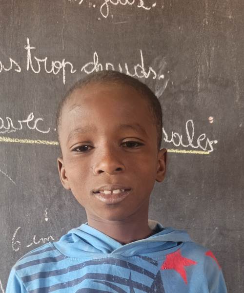 Ibrahim is a bright and determined fourth grader (2025-26) living with his parents and three siblings. Although neither of his parents has steady employment, they work hard to find jobs and support their children as best they can. The family maintains a small farm, which provides food during the rainy season and teaches Ibrahim the value of hard work and teamwork. Every school day, Ibrahim walks a short 300-meter distance to his classroom, eager to learn. His favorite subject is moral education, and he enjoys playing soccer, studying, and helping care for the family’s animals after school.