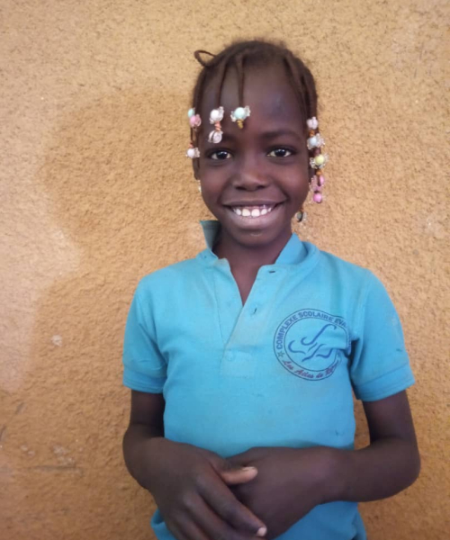 Mouniratou is a spirited and determined 2nd grader who brings light and joy to those around her. She resides with her loving aunt. Despite the absence of her parents, who are unable to care for her due to mental health challenges, Mouniratou's strength and resilience shine brightly every day. Their home, though small and lacking modern conveniences such as running water and electricity, is filled with love and the warmth of family. Each day, Mouniratou walks a kilometer to school, where her favorite activities include sensory games. Her passion for learning and her enthusiastic participation in class are truly inspiring.