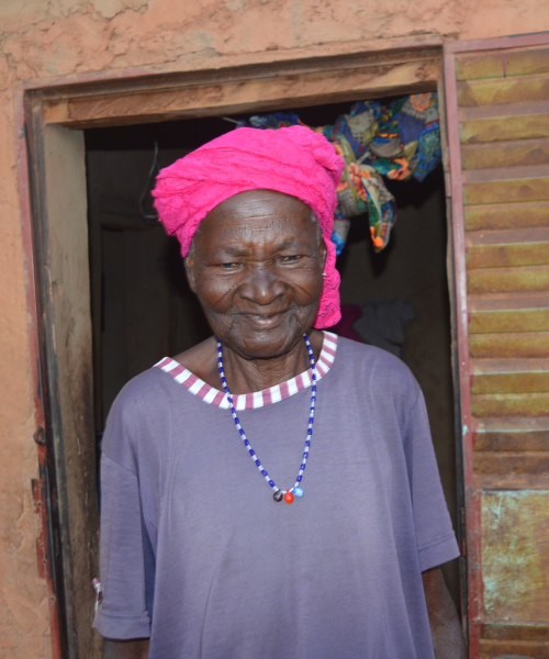 Odette was born in 1943. Her husband died in 2010. She lives in the courtyard of her deceased husband in Sector 3 of Yako. She has 6 children, 1 is deceased. All of her children are scattered. One of her daughters was married, but unfortunately lost her husband and has now come to live with Odette. There are two mud brick homes in their courtyard. Odette is very sick and unable to work and therefore has no means of caring for herself.