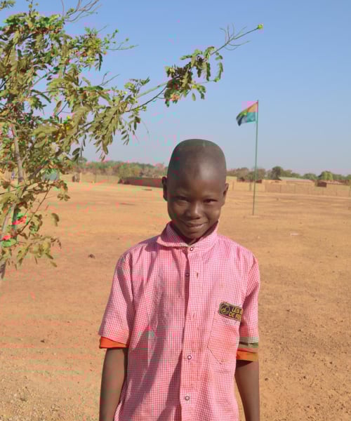 Emile Kafando is a 1st-grade student (2024-25) who dreams of becoming a nurse. He lives with his parents and siblings in a modest home without electricity or running water, and he walks 400 meters to school every day. Despite these challenges, Emile's love for reading and his passion for learning shine through. He enjoys playing marbles, washing dishes, and studying after school, and his determination to succeed is evident in everything he does.