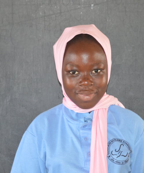 Latifatou is a diligent and ambitious 7th-grade student (2024-25) who lives with her grandmother. Despite the challenges she faces, such as living without running water and being 2 kilometers away from the well, Latifatou remains focused on her education. She enjoys history and geography and dreams of becoming a teacher. After school, she loves playing hide and seek or helping with household chores. Her determination and positive attitude are truly inspiring.