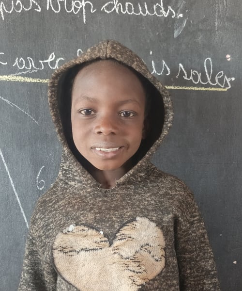 Aubin's typical day begins with a one-kilometer walk to school, where he eagerly absorbs knowledge and engages with his peers. His passion for learning is matched only by his love for soccer. When he is not in the classroom, Aubin can often be found on the makeshift soccer field, playing spirited games with his friends and siblings. His bright smile and infectious energy light up the field and bring joy to everyone around him. Sponsoring Aubin means supporting a young boy's dreams and helping a determined family build a better future.