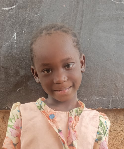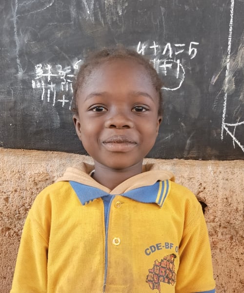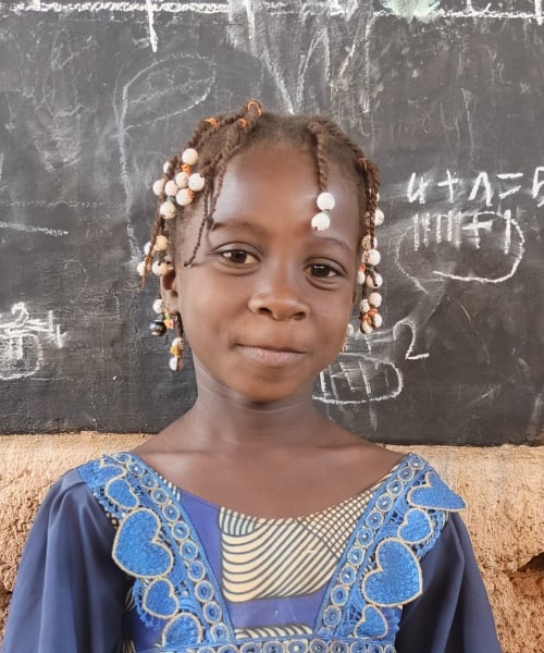 Mamounata is a bright and determined 4th-grade student (2024-25) who lives with her mother and grandmother. Despite the challenges she faces, such as living in a courtyard with 16 people and having no running water, Mamounata remains optimistic and dedicated to her studies. She enjoys math and dreams of becoming a nurse one day. After school, she loves playing marbles or helping with household chores. Her resilience and positive attitude are truly inspiring.