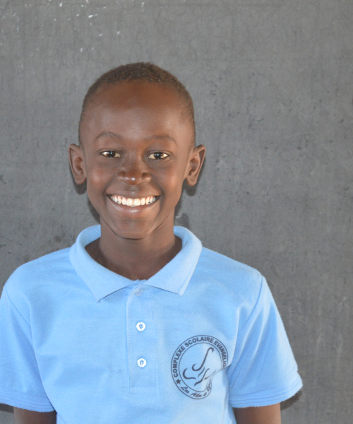 Hello, my name is Esdras Rakistaba. I come from a Protestant family. I was born in 2010. My father is a pastor. I have four brothers and sisters, but many other people live with us, too. I walk about two kilometers to go to school each morning. This year (2022-23), I am in the 7th grade. I like school a lot, but French is my favorite class! After school, I like to play soccer with my friends or do my homework. When I’m all grown up, my dream is to become a pilot.
