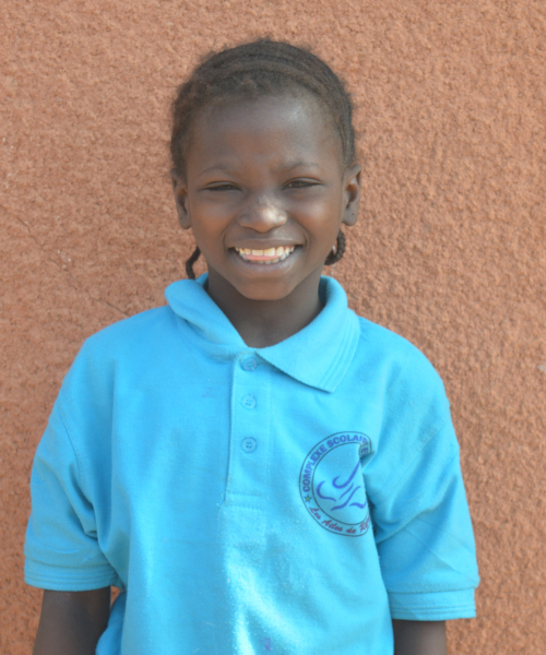 Hello, my name is Faousia. I was born on May 16, 2015. I live with both of my parents and my three siblings who are all older than I am. My parents have a small farm where we grow the food that we will eat throughout the year. When the rains are finished for the year, my father will get a little bit of work as a tailor making clothes for people. My mother works to cook and clean our home. We have no running water in our home, so we have to travel to the well to get it. We need a lot for all of our cooking, washing, and drinking. We are a Muslim family. This year (2020-21), I am in first grade. I walk about two kilometers each way to get there because I do not have a bike. I like all of the things that we are learning in school, but math is definitely my favorite. When I am all grown up, I would like to become a nurse so that I can learn how to take care of people.