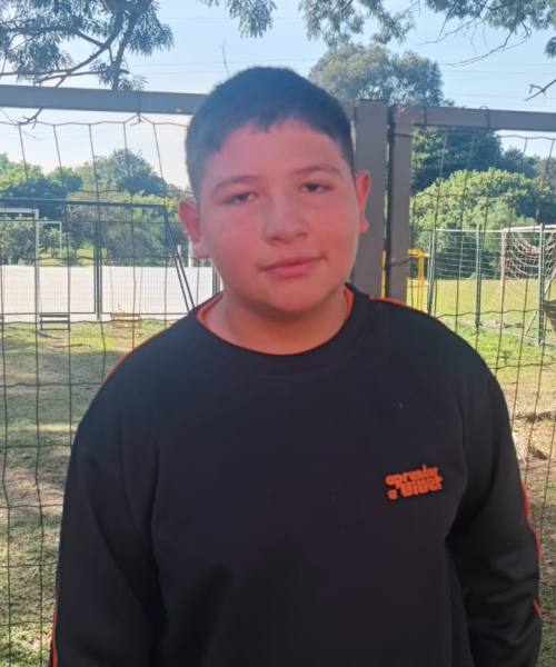 Mateus came to the base looking to join the free soccer program and once in the program, Mateus was awarded a 7th grade scholarship at the YWAM base Christian School, Aprender é Viver for the 2024-2025 school year.