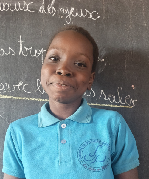 Sakinatou is a joyful and determined 4th grade girl (2025-26). Born in 2015, she now lives with her loving grandmother, even though both of her parents are alive. Life is challenging in her neighborhood—her family doesn’t have running water or electricity, and their courtyard lacks a wall for protection and to keep their animals safe.
