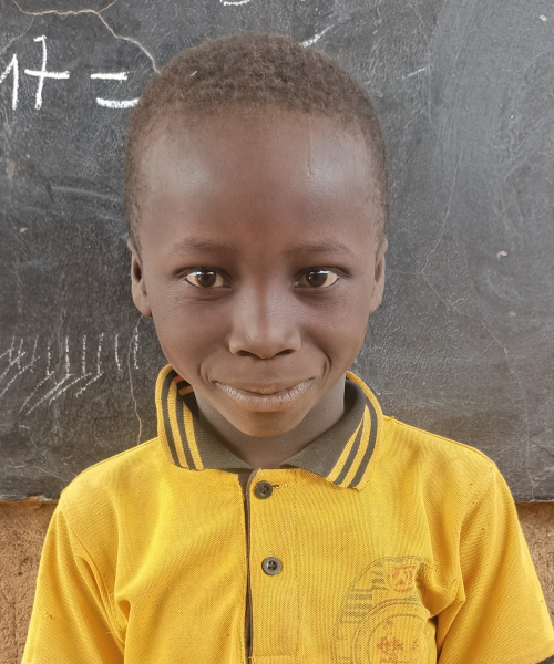 Timothee is a bright 7-year-old boy (2025) living in a modest home with his loving parents and two siblings. Though their house has no running water or electricity, the family’s faith is a guiding light, and Timothee is proud of his Protestant background. Each morning, he walks about 500 meters to his school, where he eagerly joins his second-grade (2025-26) classmates. His favorite subject is math, and he always pays close attention, hoping that one day he can become a teacher and help other children learn and grow.