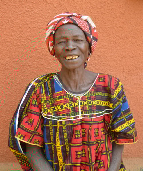 Hello, my name is Awa. I was married for several years, but my husband died over 20 years ago. We had two sons together, but one of them moved to a neighboring country to find work. The one that is still in town, works as a subsistence farmer. I try to help out on the farm as much as I can, but it is very hard for me with all of the aches and pains that come with my age. We live about half a kilometer from the closest well, so it is sometimes hard to get enough water for all of the work that we have to do around our home and to drink.